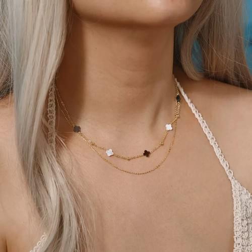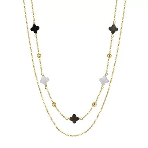 Wholesale 925 Sterling Silver Celestial Boho Double Layer Choker Necklace with Black Shell Clover
