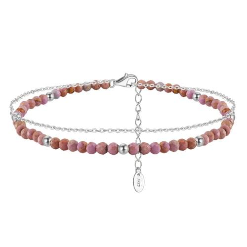 Double Layer Anklet: Purple Mica Beads & 925 Silver Chain, Rhodium/14K Gold