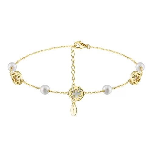 B2B Sterling Silver Reversible Dainty Four Leaf Clover Pearl Foot Jewelry for Custom OEM Orders