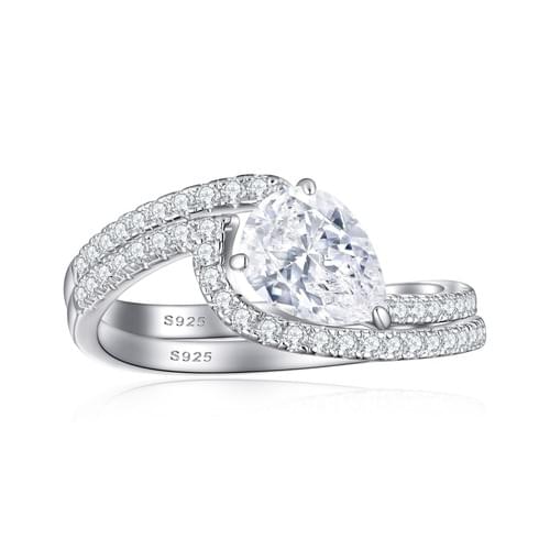 Pear Cut White Zirconia 925 Silver Bridal Ring, Rhodium Plated Wholesale