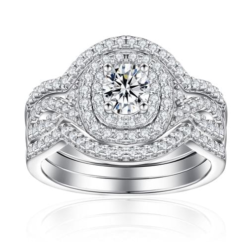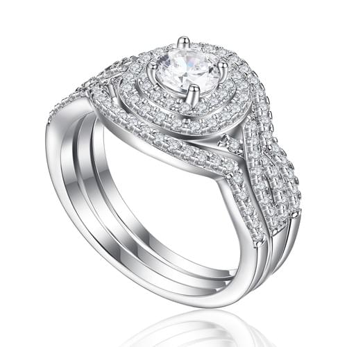 3-Piece Wedding Ring Set 925 Silver with 5A White Zirconia, Rhodium Plated