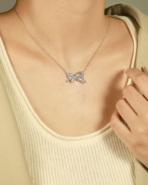 B2B Elegant Bow Design 925 Silver Jewelry Set with 5A White Zirconia